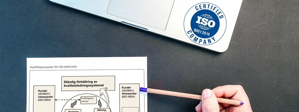 Vi utvecklar ert kvalitetsarbete tillsammans med er. Vi kan bistå er hela vägen till en ISO 9001-certifiering samt erbjuder andra tjänster inom kvalitetsområdet.